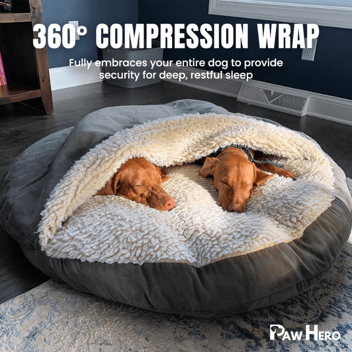 Using its 360° Compression Wrap design, the Paw Hero Calming Cave Bed fully embraces your dog, creating a cozy, den-like structure that provides security and comfort. This soothing design mimics a mother’s embrace and naturally activates their calming instincts during stressful situations.