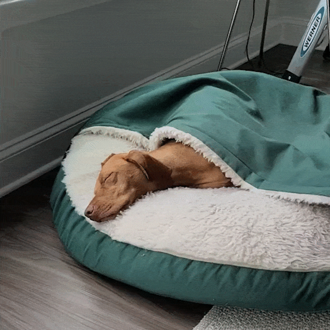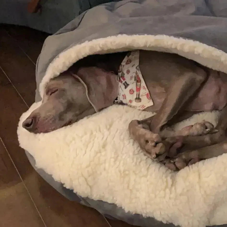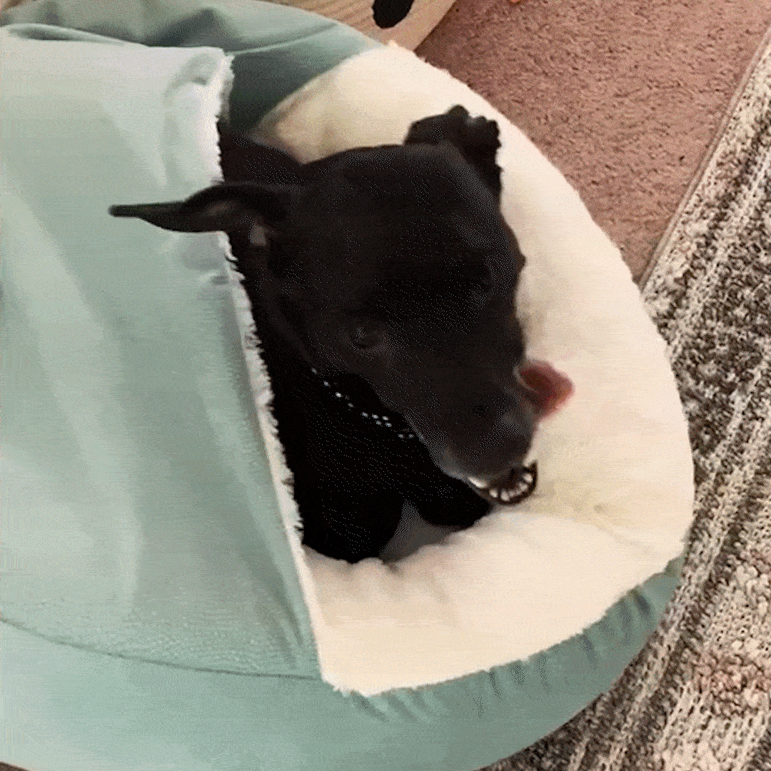 The calming cave bed creates a cozy, enclosed space with its 360° Compression Wrap design, mimicking the comfort of a secure den. It naturally activates a dog’s calming instincts, reducing anxiety and helping them relax, even during stressful situations, while its orthopedic foam and soft materials promote deep, restorative sleep.